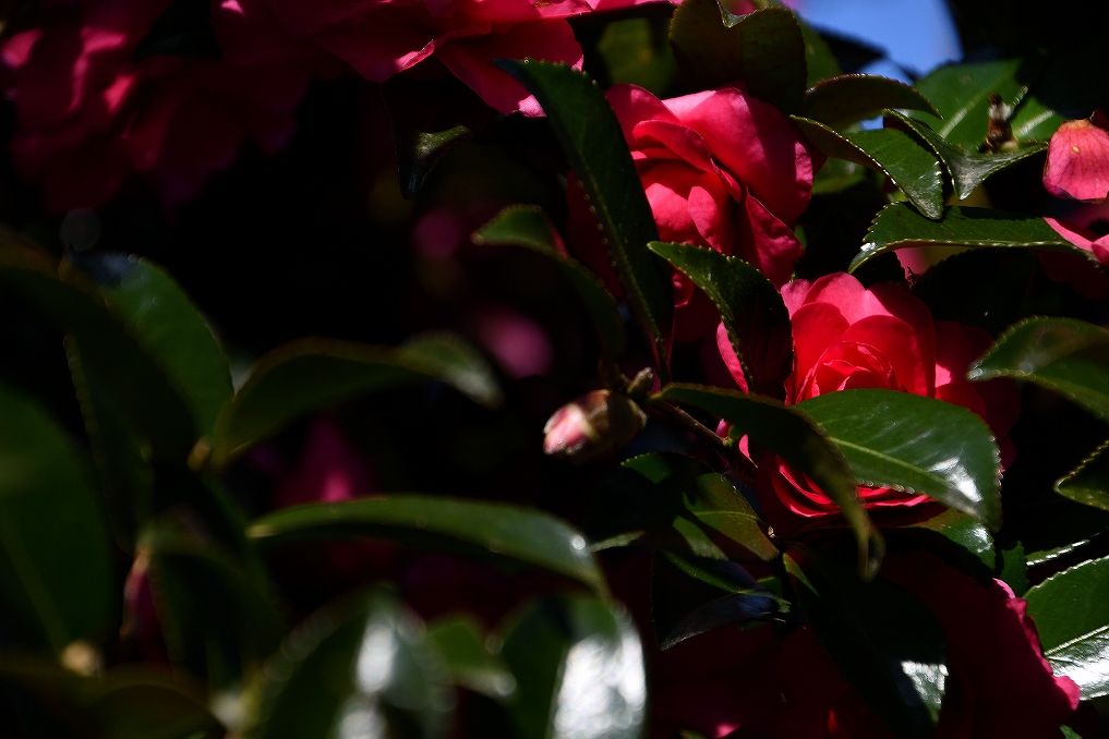 サザンカの赤が陽を浴びてきれいです。