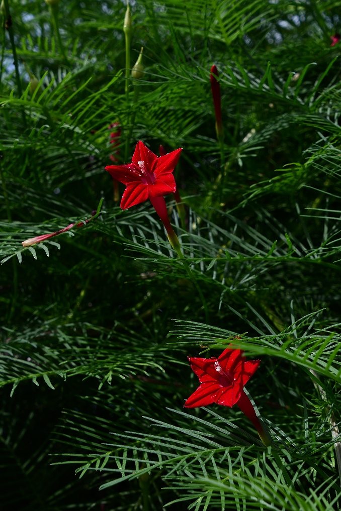 赤い花が咲いています。