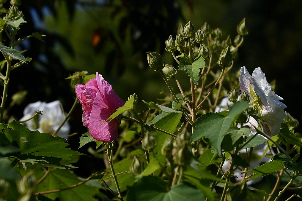 酔芙蓉、今朝は酔いどれた姿もありました。