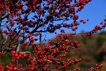 ウメモドキも真っ赤です。