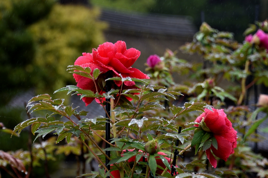 2019.05.01(Wed) 藤の花と牡丹が雨に濡れていました。 牡丹には雨が似合います。