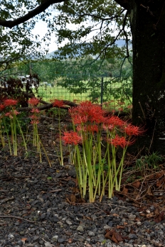 神社の境内に咲く彼岸花です。