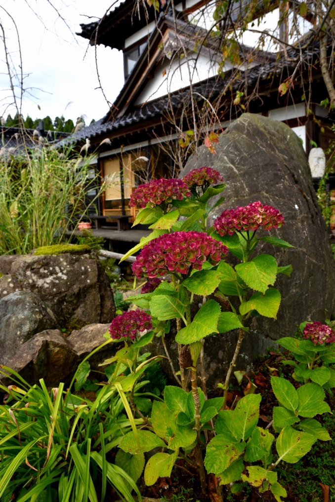 秋になって色づくアジサイがありました。