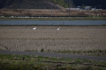 遠くにいるのはコハクチョウたち