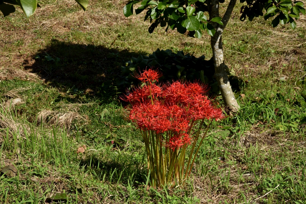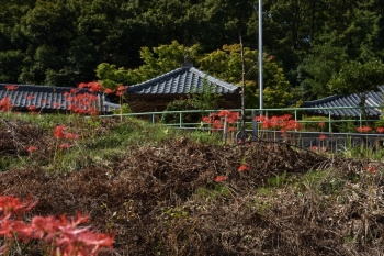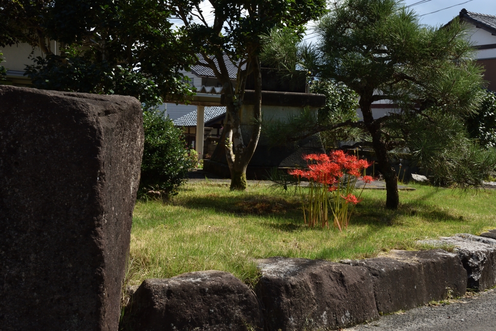 寺の参道に彼岸花が咲いていました。