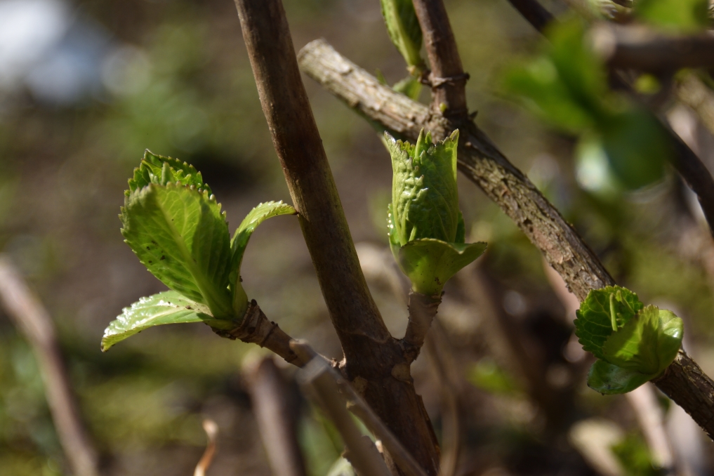 さくら、桃、あじさい、それぞれが蕾を膨らませています。