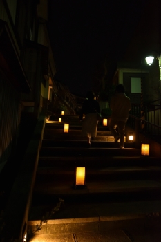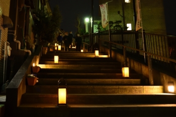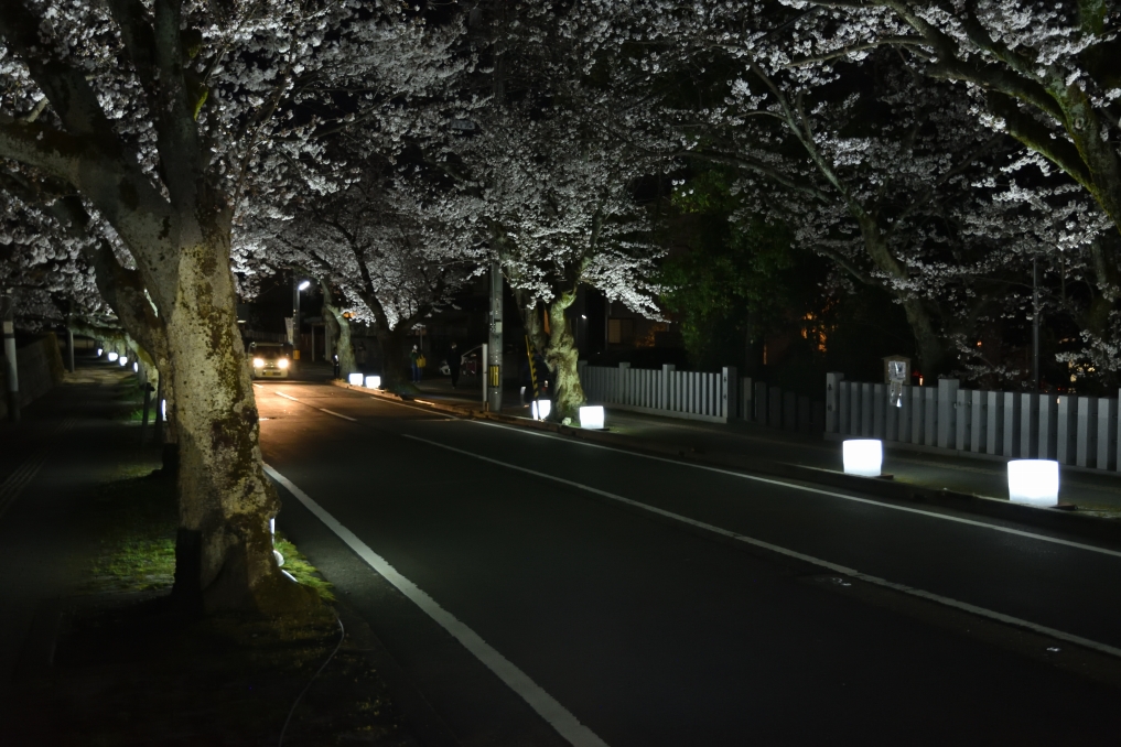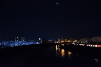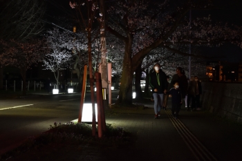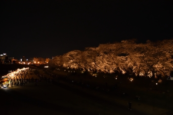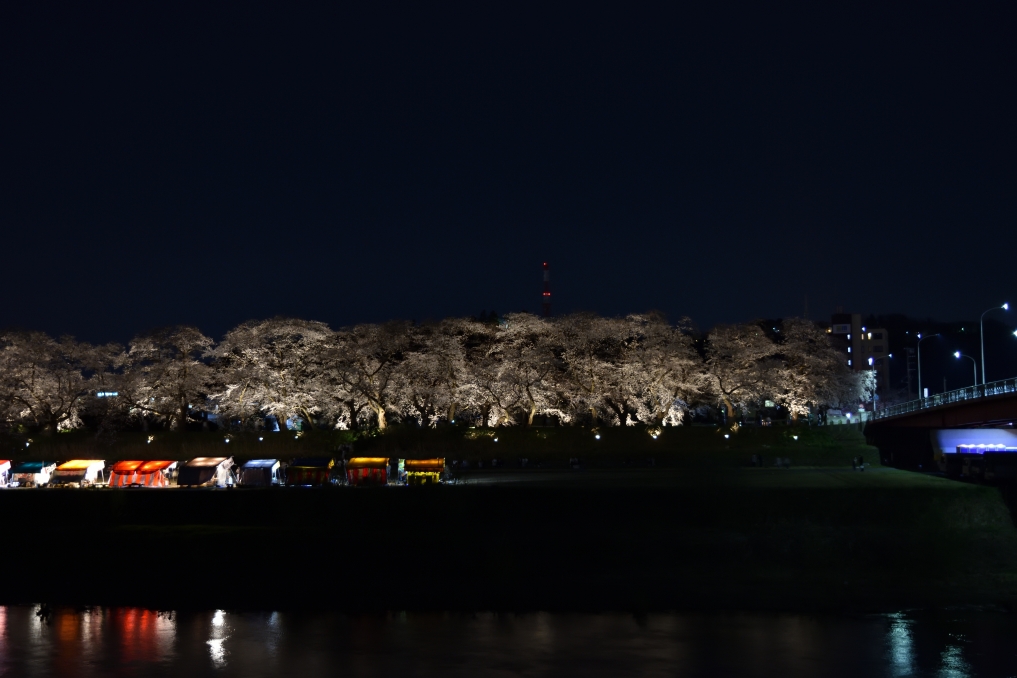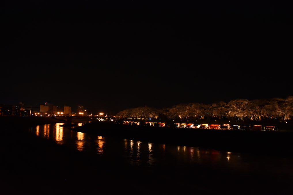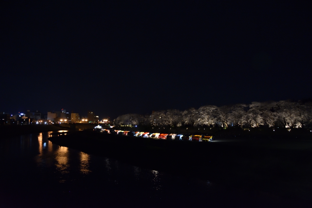 2021.03.27(Sat) 通りの両側にあんどんが設置されています。 土手の下には夜店が出ていました。