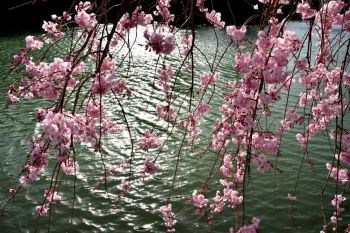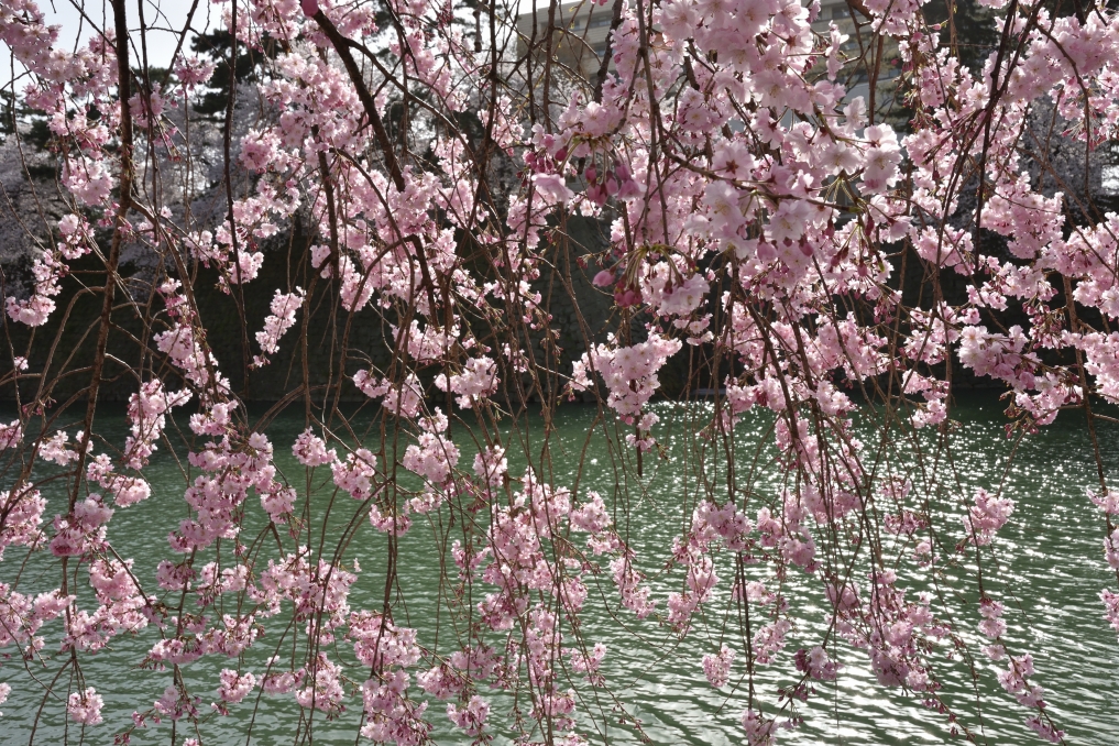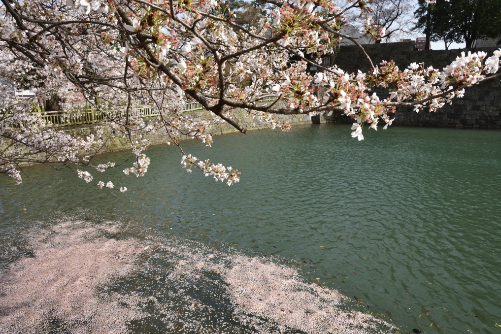 お堀の水面に輝いていました。