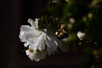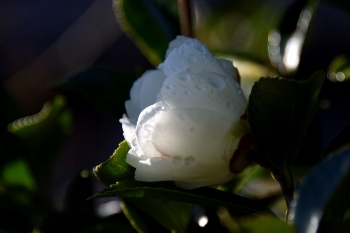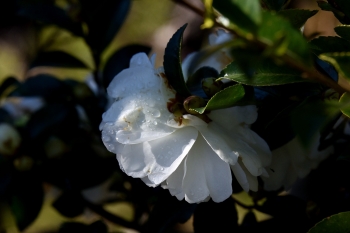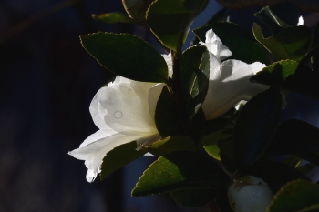 サザンカに陽が差していました。