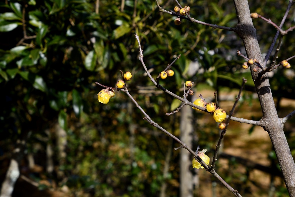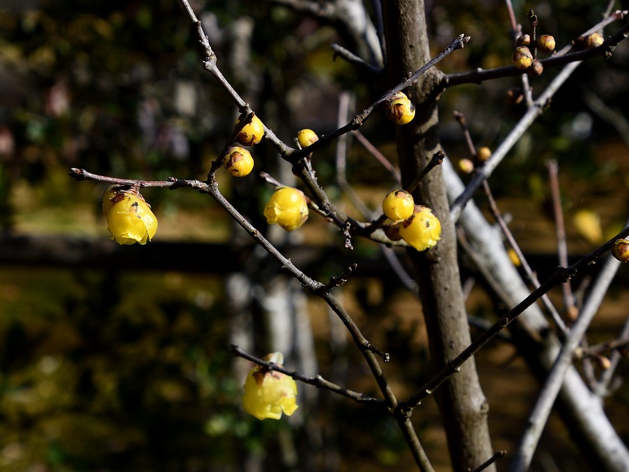 ロウバイ、陽が当たって黄色が鮮やかです。