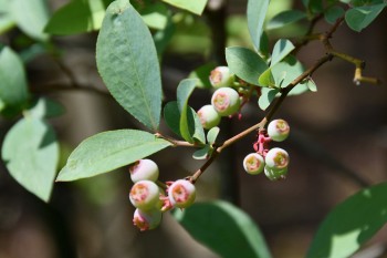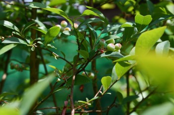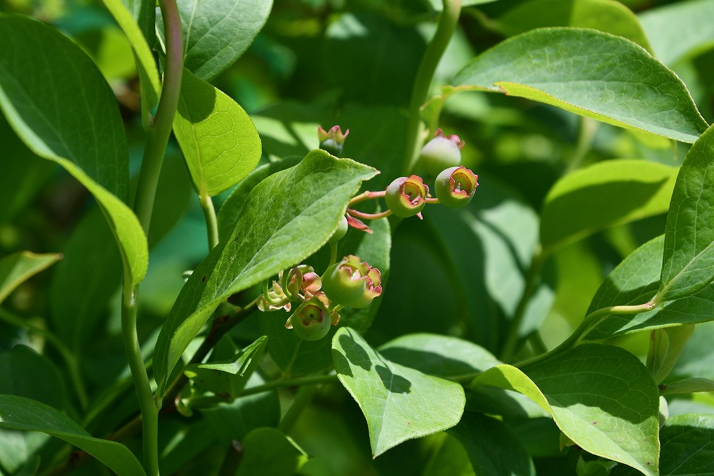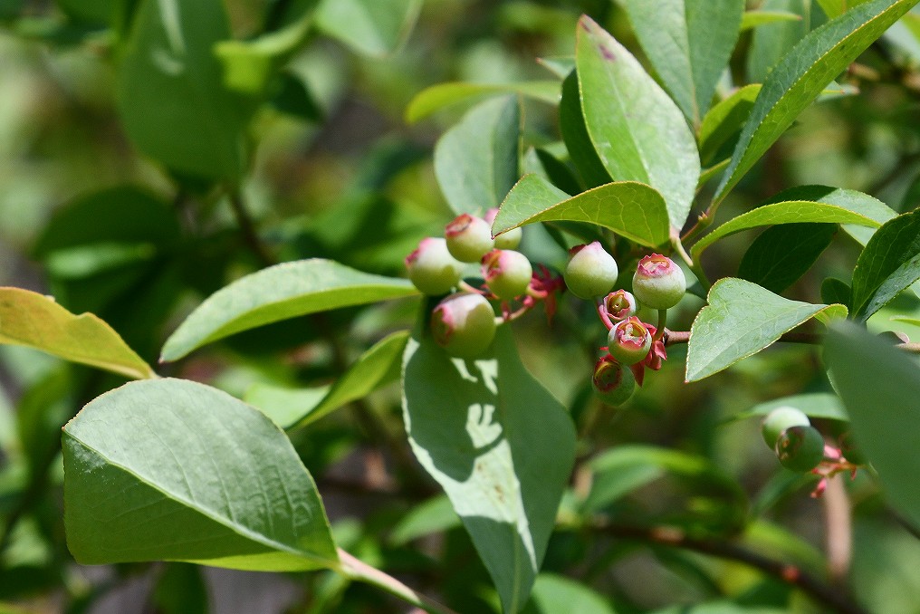 ブルーベリーが実をつけています。