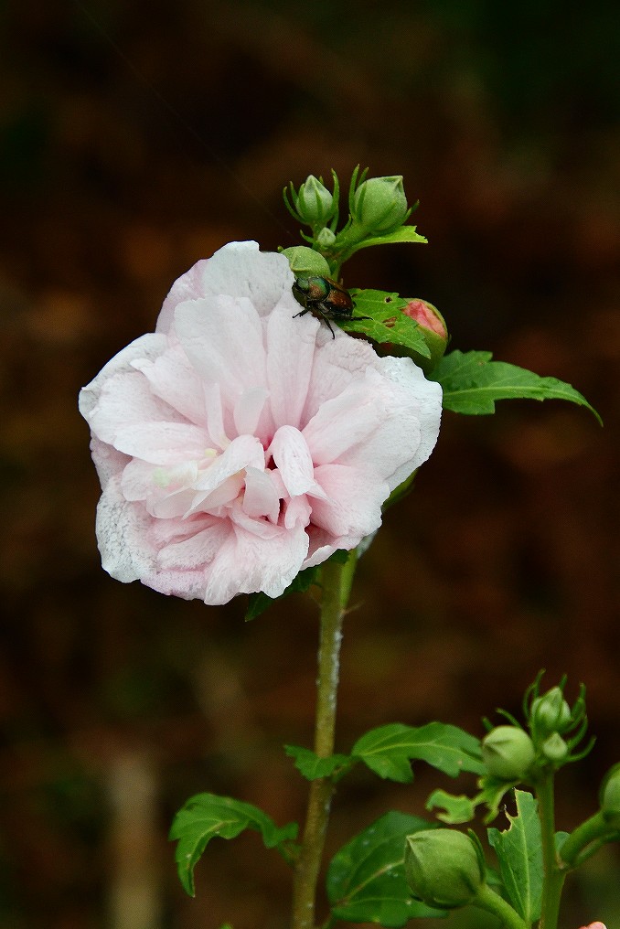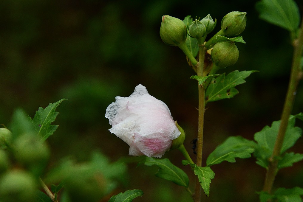 雨の中「ムクゲ」が咲いていました。
