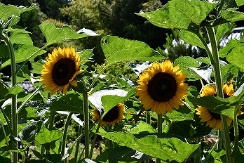 青空に黄色のヒマワリ。