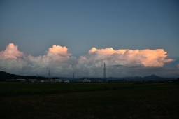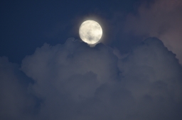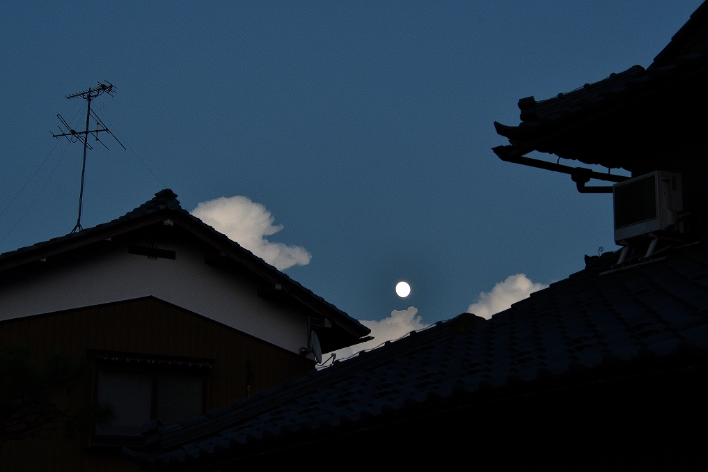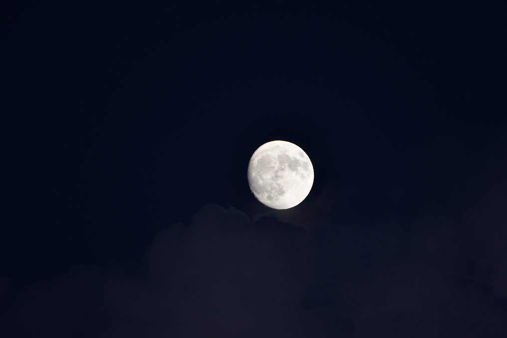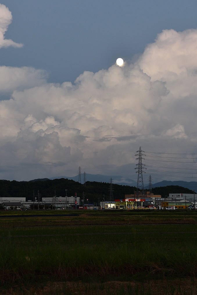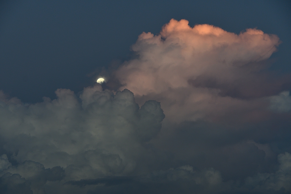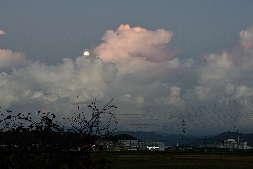 夕焼けの雲を撮っていたら、月が顔を出しました。