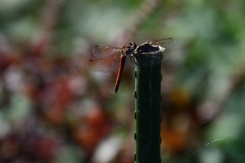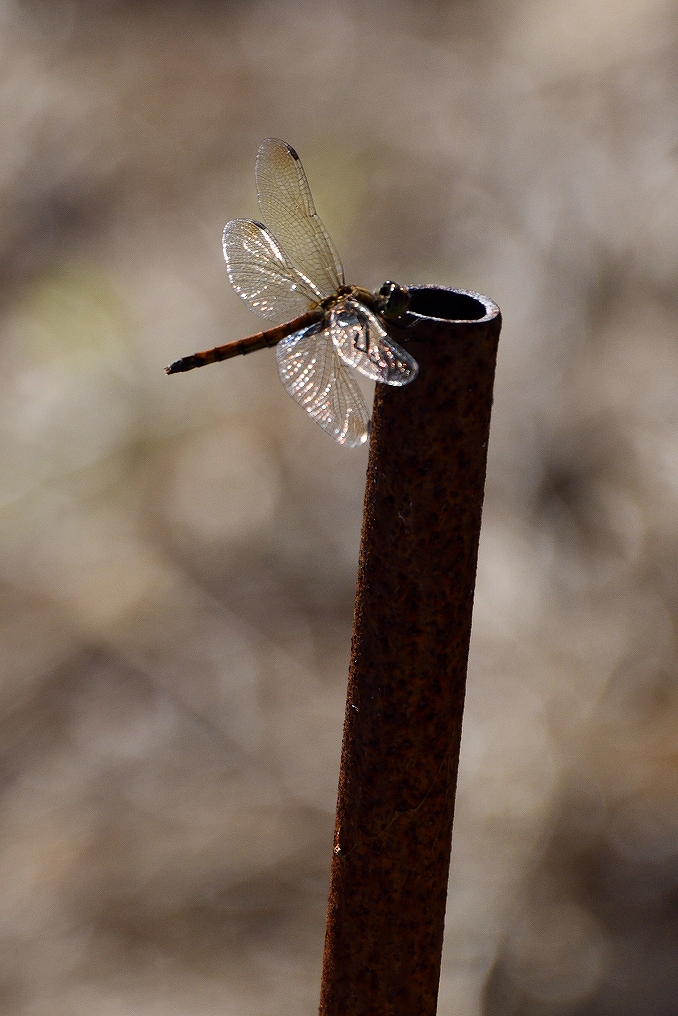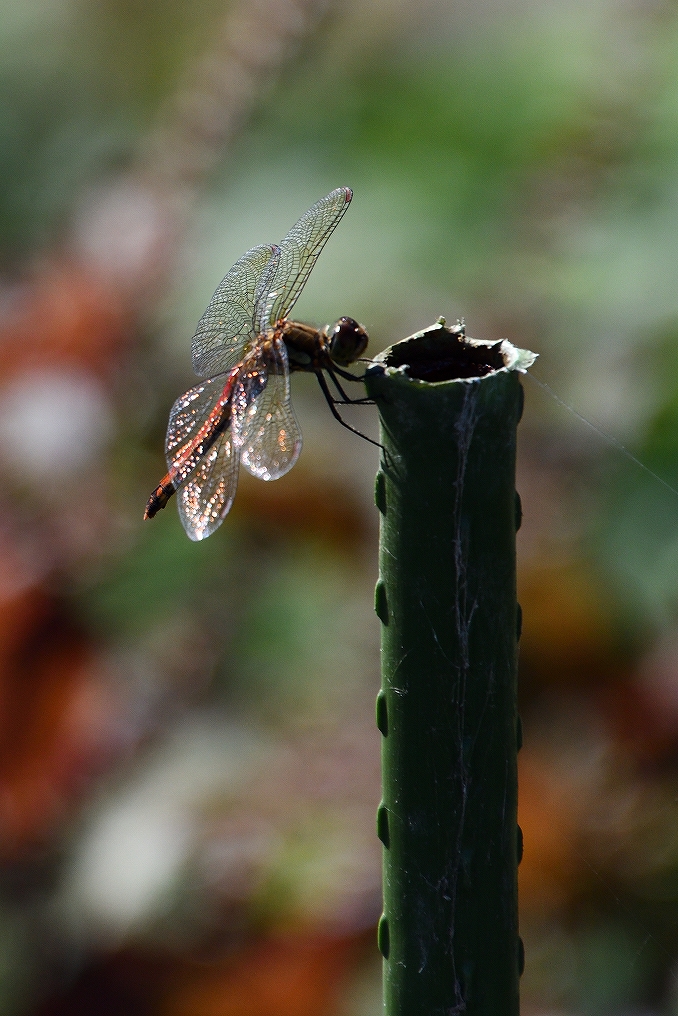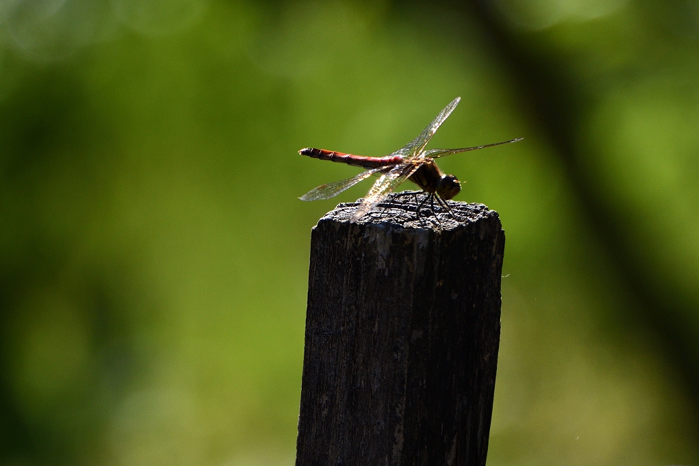 「赤とんぼ」、夕日に羽が輝いていました。