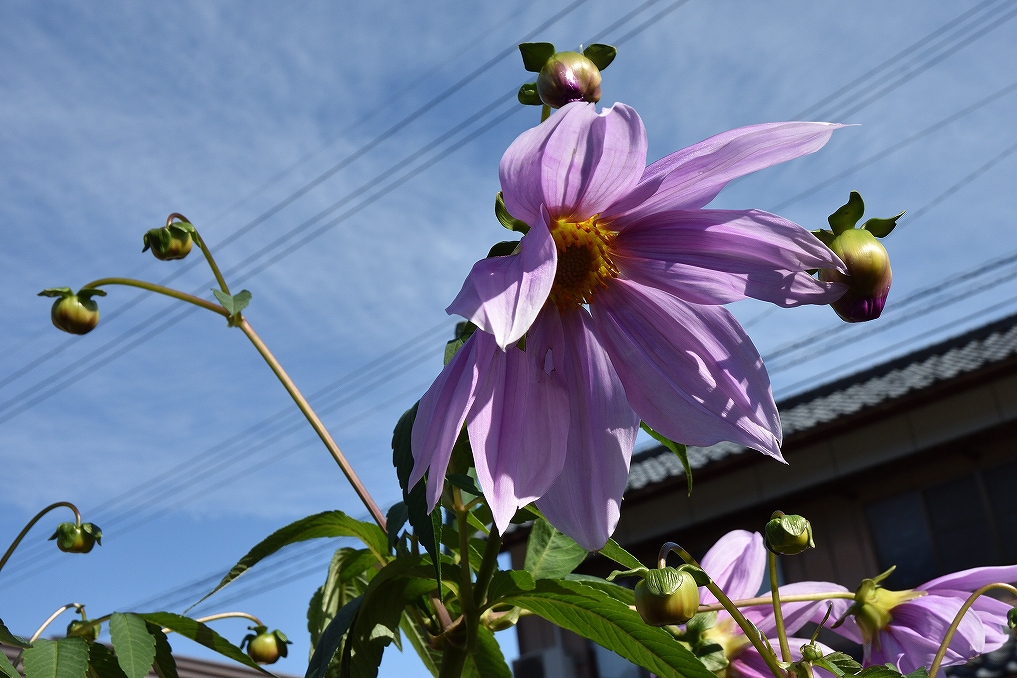 皇帝ダリヤに陽が当たっています。