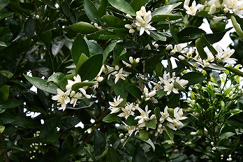 ミカンの花が咲いています。