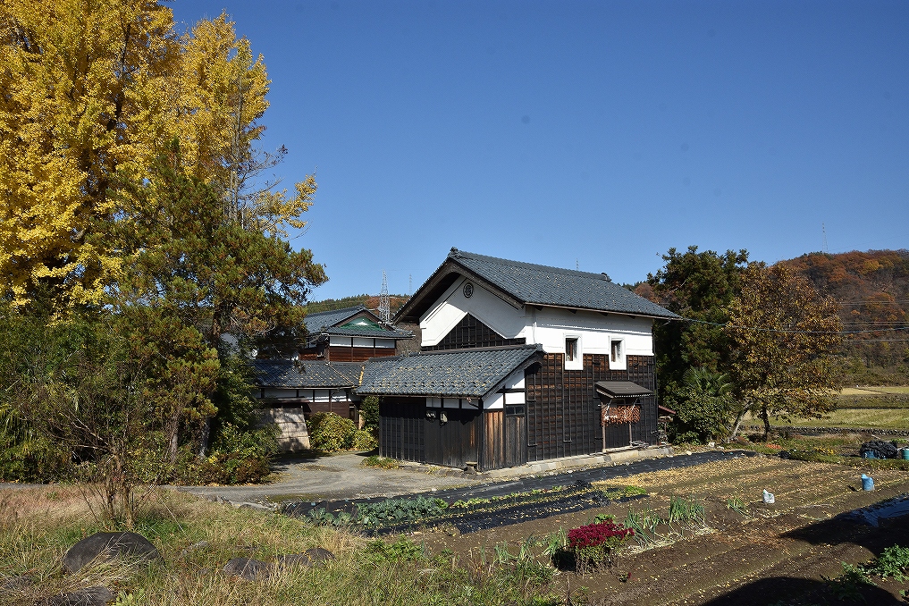 蔵の軒下につるし柿のすだれがありました。