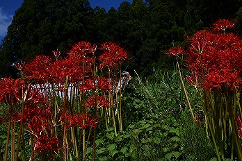 集落の外れに彼岸花の群落がありました。